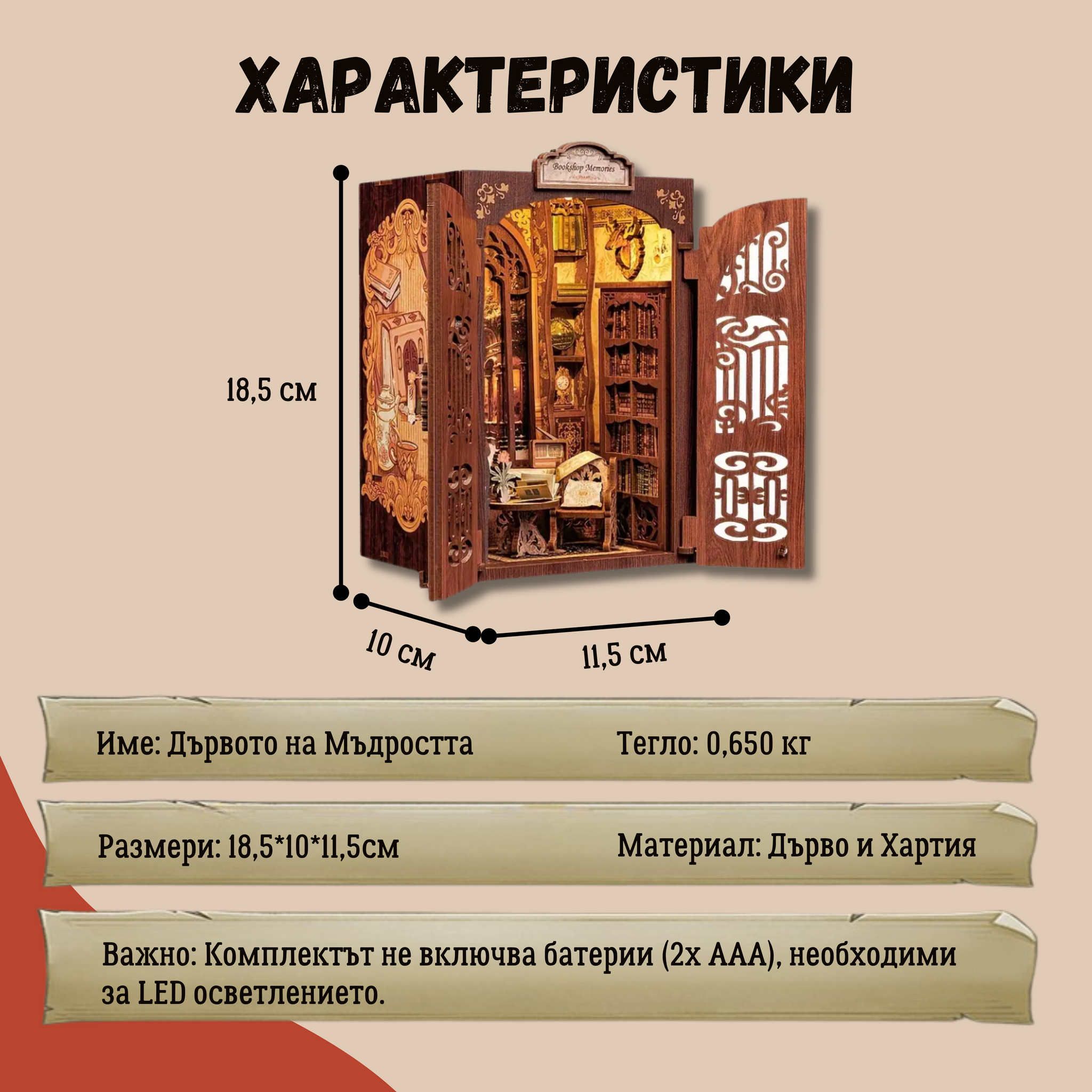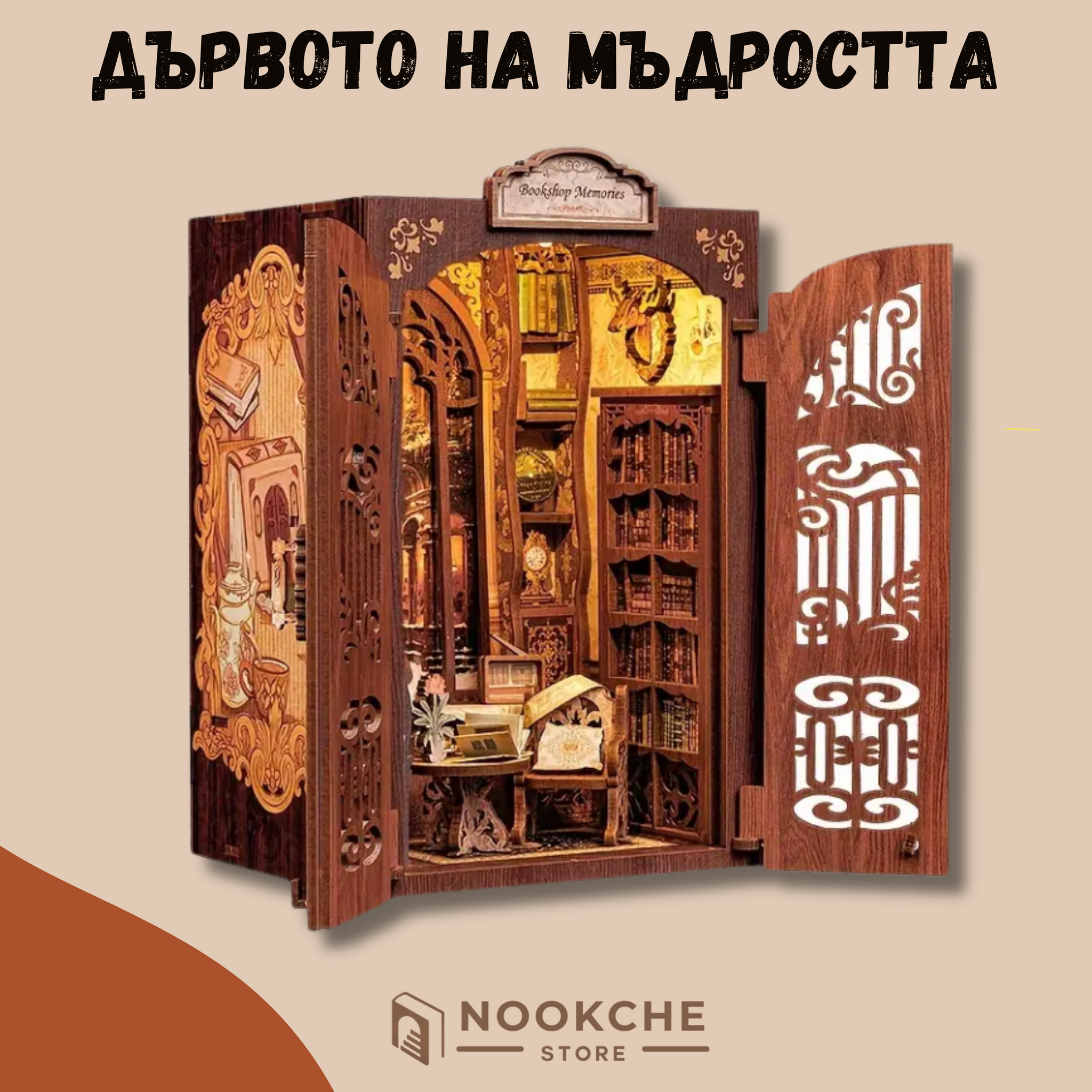 Потопете се в магията на знанието с комплекта „Bookshop Memories“ – миниатюрен свят, в който природата и книгите се преплитат в символ на вечната мъдрост. Сред разлистените клони и малките рафтове с книги ще откриете хармония, вдъхновение и усещане за връзка между миналото, настоящето и бъдещето.