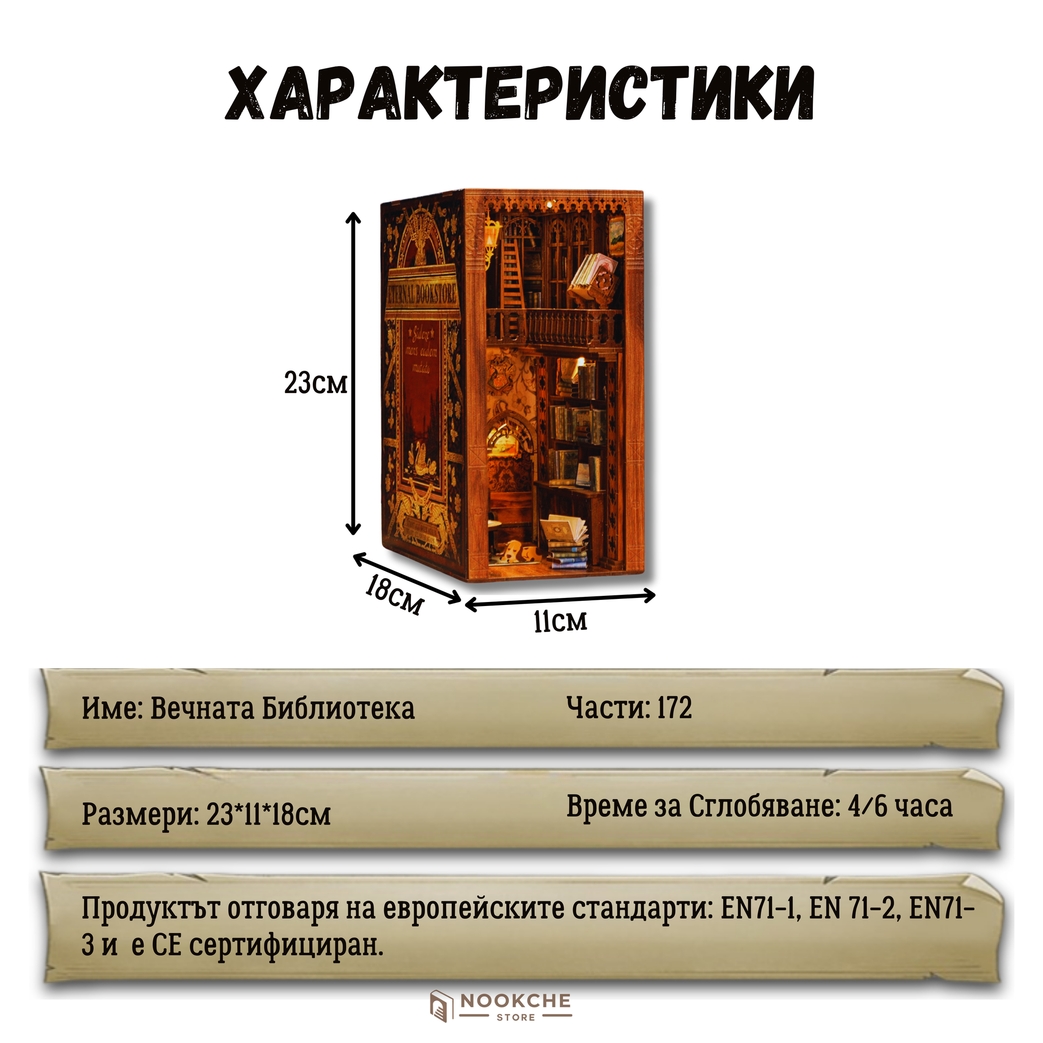 „Eternal Bookstore“ е изящен подарък за почитателите на историята, литературата и ръчната изработка – за всички, които вярват, че знанието е най-ценният дар на човечеството.