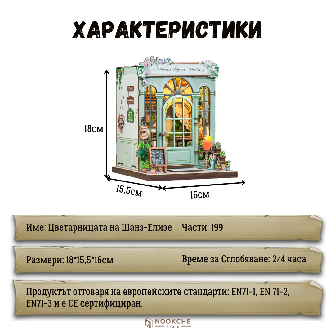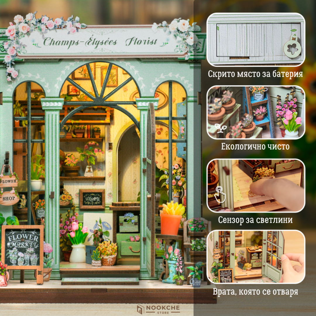 Потопете се в романтиката на Париж с комплекта „Champs-Elysees Flowers“ – миниатюрен свят, където ръчно изработени букети, улични лампи и френска архитектура пресъздават духа на града на любовта във вашия дом. Всеки детайл носи уют и вдъхновение, създавайки неповторима атмосфера.