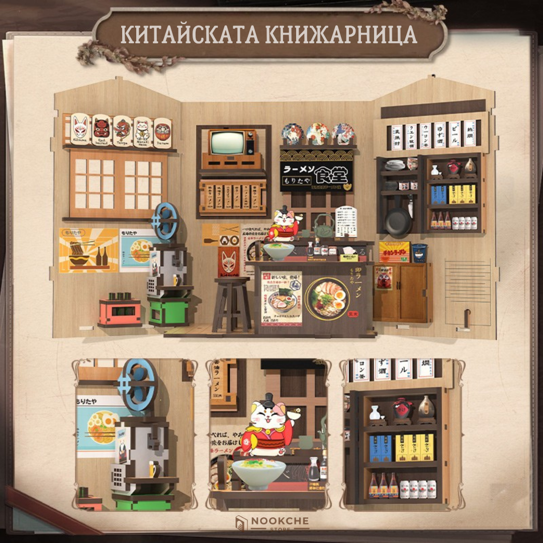 Потопете се в изяществото на Далечния изток с комплекта „Morita-Ya's Ramen Shop“ – миниатюрен свят, където изящни орнаменти, дървени конструкции и калиграфски свитъци създават усещане за спокойствие, уважение към знанието и вечна традиция. Меката светлина допълва атмосферата, превръщайки всяко ъгълче в малък храм на мъдростта.