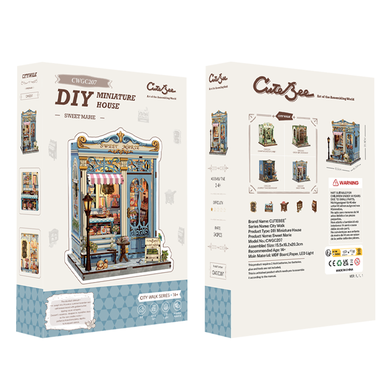 Нашите DIY комплекти съдържат всичко необходимо – подробно ръководство, инструменти за рязане, декоративна хартия, твърди шперплатови елементи и осветление.