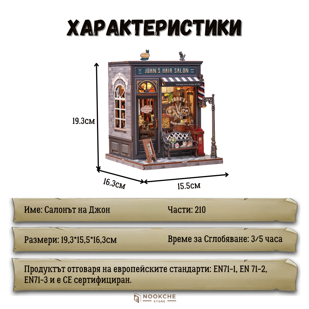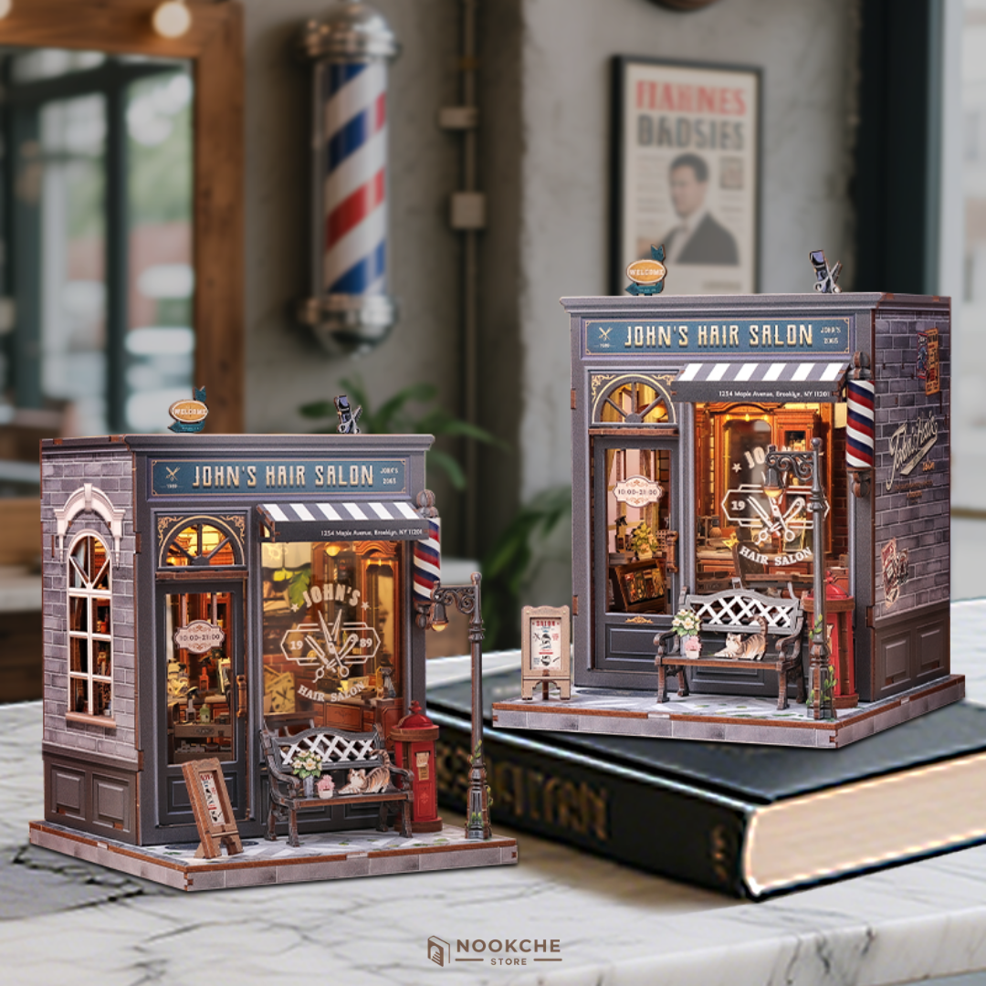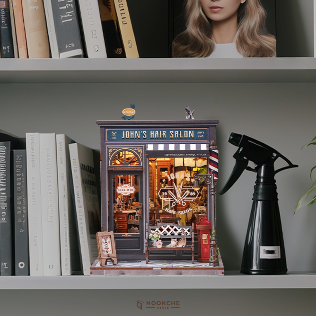 Потопете се в ретро атмосферата с комплекта „John's Hair Salon“ – миниатюрен свят, където детайлни мебели, малки инструменти и винтидж декор създават усещане за стил и класа. Всеки елемент отразява майсторството и грижата към детайла, вдъхновявайки сетивата.