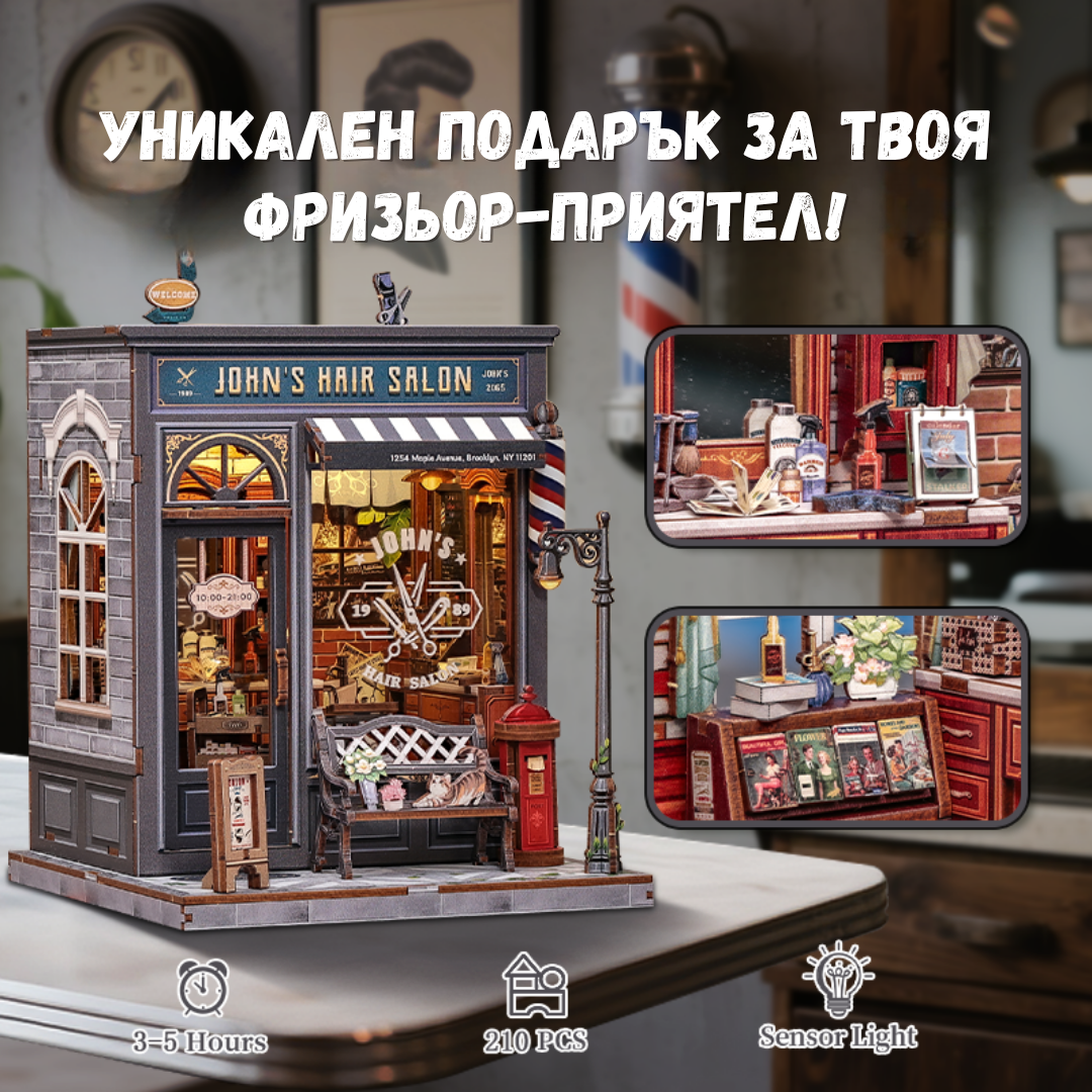 Сглобяването е приятно и удовлетворяващо преживяване – процес, който носи спокойствие и развива сръчност, докато създавате своя собствен миниатюрен бръснарски салон.