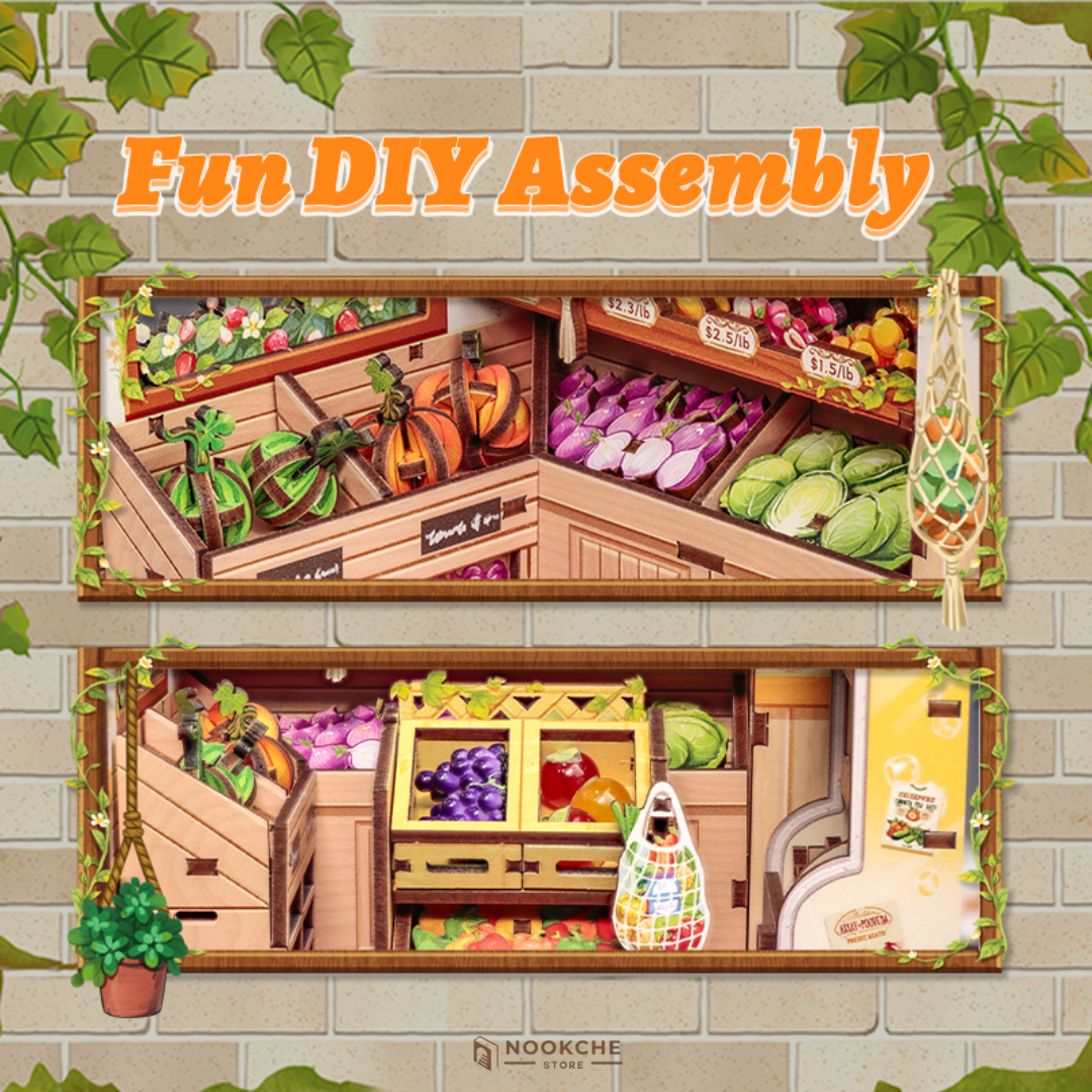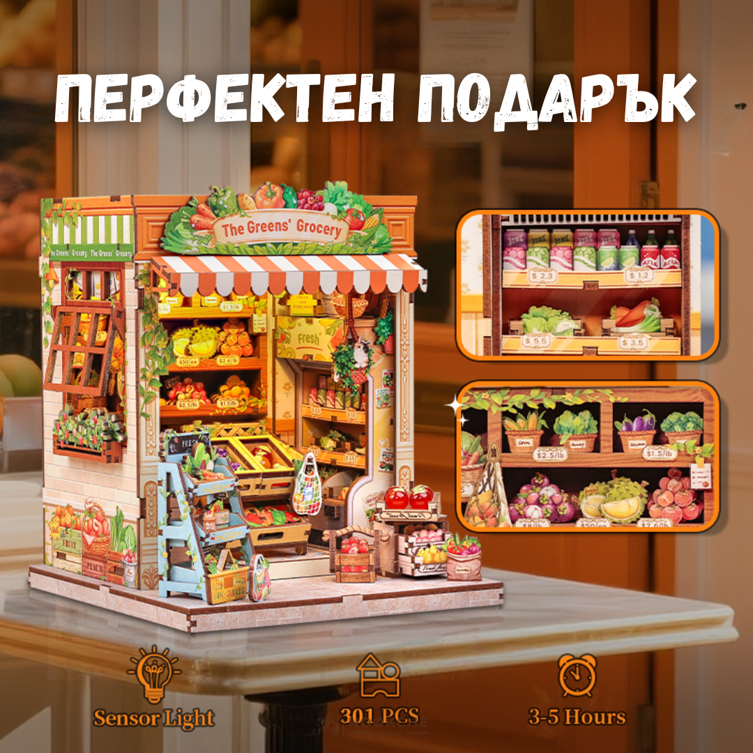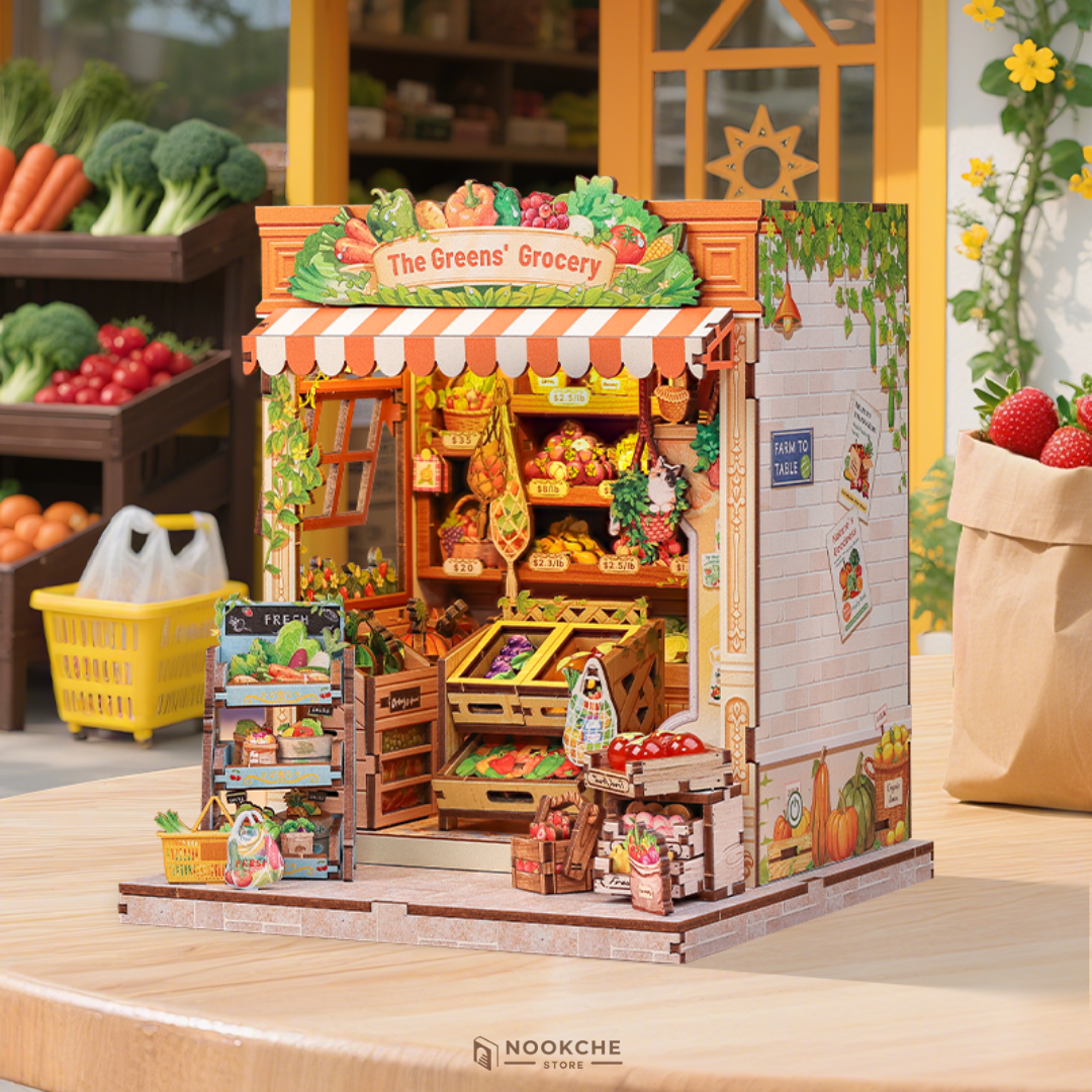 Този book nook пресъздава природа и уют, вдъхновен от малък градински магазин с рафтове с саксии, инструменти, семена и миниатюрни растения, създаващи хармонична и жива сцена. Сглобяването е релаксиращо и творческо преживяване, което развива търпение, концентрация и усет към детайла, носейки спокойствие и удовлетворение. Миниатюрният свят предлага гарантирано бягство от забързания живот, където времето се измерва с растежа на растенията и аромата на прясна пръст. Това го прави идеален подарък за любители на градинарството, природата и уютните миниатюрни сцени.
