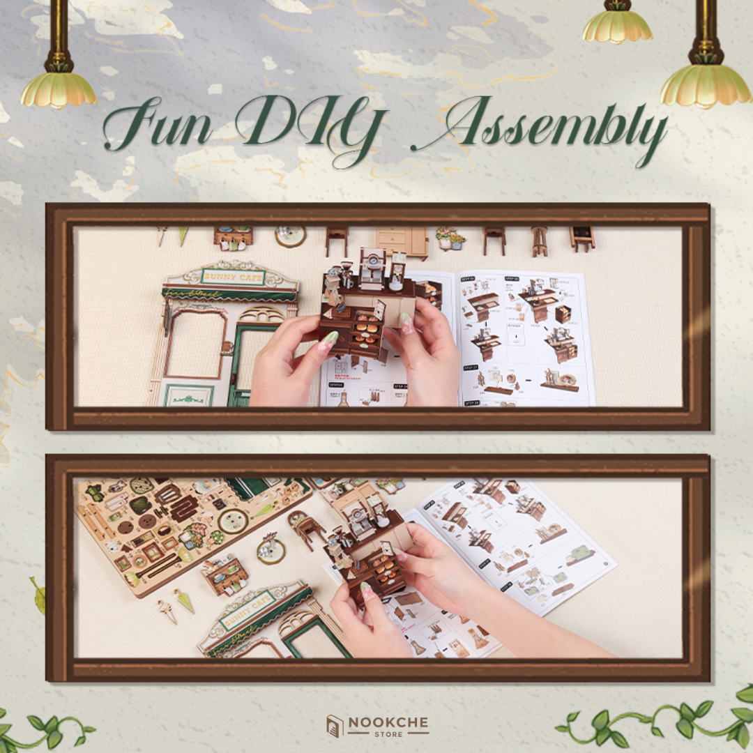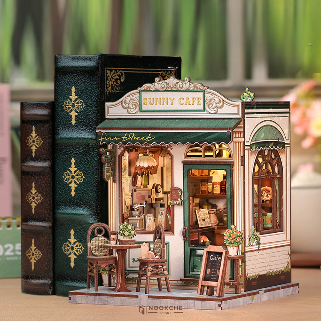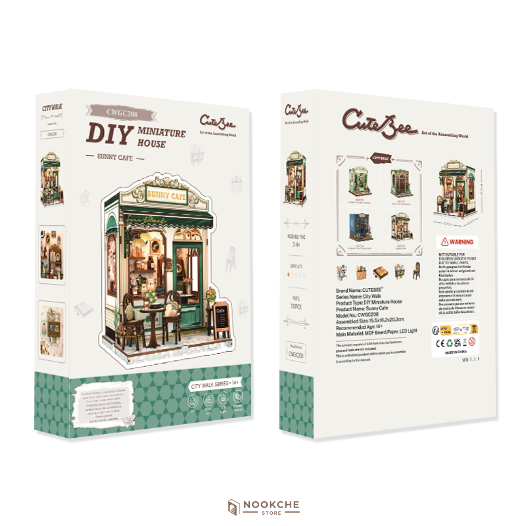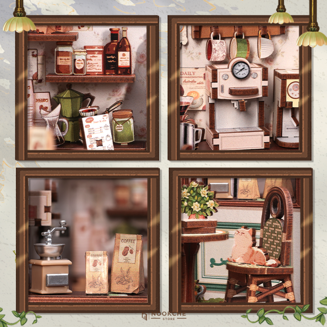 Този book nook излъчва уют и положителна енергия, като създава усещане за светлина и лекота, напомнящо за малко квартално кафене, огряно от сутрешното слънце. Сглобяването е приятно и релаксиращо преживяване – спокойно и вдъхновяващо занимание, което развива търпение, концентрация и внимание към детайла. Миниатюрният свят предлага гарантирано бягство от забързаното ежедневие и кани към моменти на топлина и спокойствие, където всяка пауза е ценна, а всяка книга се чете с удоволствие. Това прави този книжен нук идеален подарък за любители на кафето, уютните пространства и миниатюрните сцени с позитивно настроение.